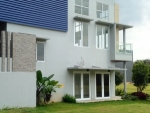 KONSTRUKSI: Rumah baru, tembok bata merah keliling di aci finishing cat, atap baja ringan, kusen dan pintu kayu panel merbau, jendela alumunium dan pintu sliding door, relling tangga dan balkon stainless steel dan kaca tempert, sanitary by toto.